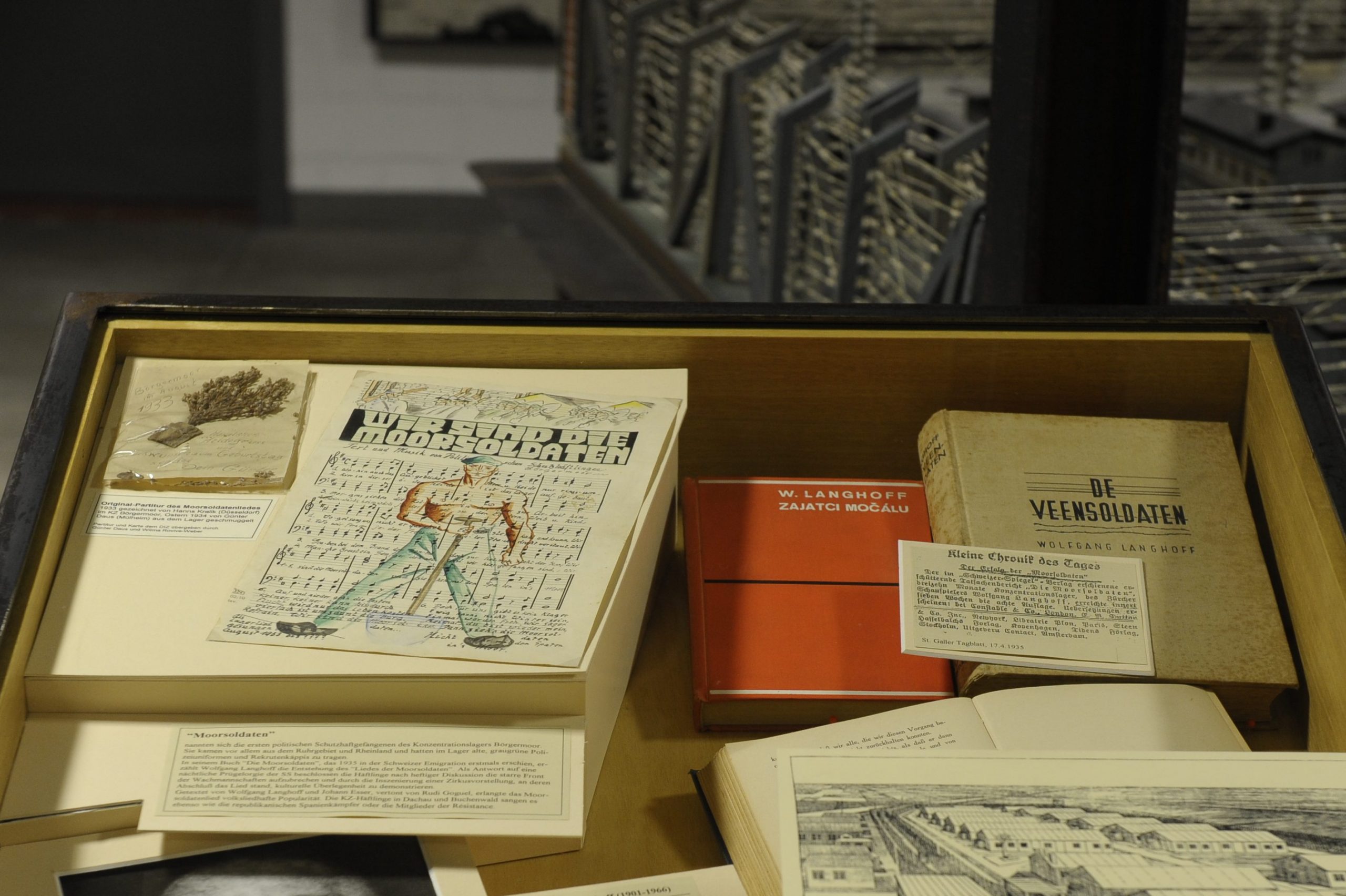 Die Gefangenen der Emslandlager versuchten auf vielfältige Weise ihr Selbstwertgefühl gegen die Nationalsozialisten zu behaupten. In Pulten und Vitrinen sieht man Zeugnisse dieses Widerstandswillens. Dazu zählen unter anderem Lieder, vor allem das ‚Moorsoldatenlied‘, zahlreiche frühe Berichte über die Lager, Briefe und Postkarten an die Familie, Zeichnungen und Schnitzereien aus Mooreiche. Insbesondere der Bericht von Wolfgang Langhoff fand sehr schnell internationale Beachtung und erschien als Buch „Die Moorsoldaten“ in kurzer Zeit in vielen Ländern.